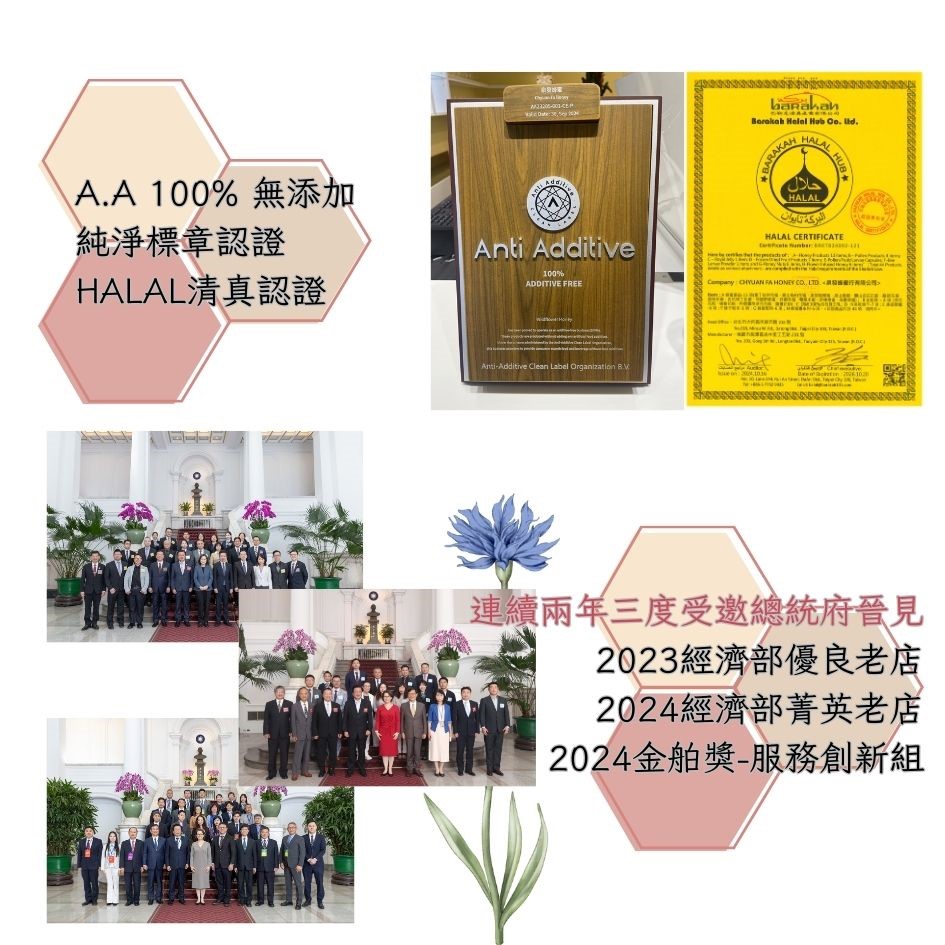 歐盟A.A. Clean Label認證:100%無添加,拒絕鮮味劑、漂白劑、人工色素、香精與防腐劑,呈現蜂蜜最純淨的原貌。