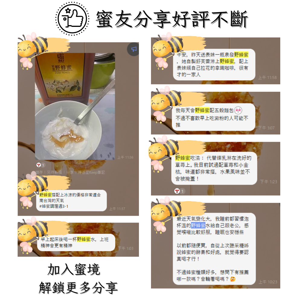 建議比例:蜂蜜與水1:15,依口味自由調配,輕啜間品味自然之美。